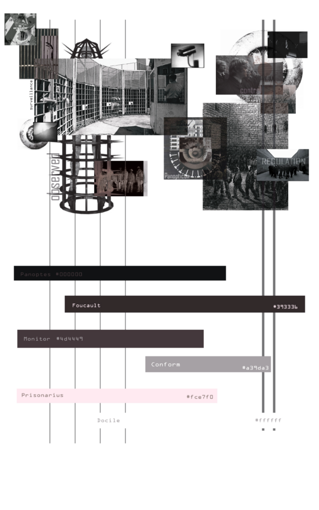 Inspired by Bentham’s ideal prison, the panopticon , a prison that makes every single inmate feel observed at all times, resulting in self-discipline. Focusing on the idea of being observed and the prisoners.